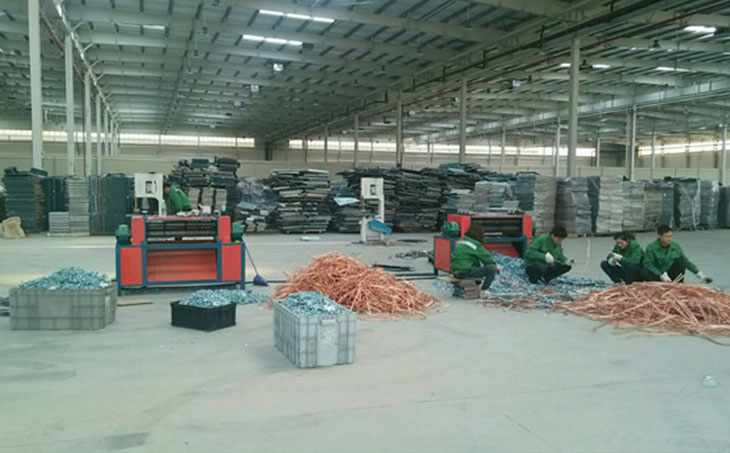 采用物理干式分離法,散熱器分解機(jī)銅管鋁箔分離速度快、工效高,操作簡便、容易維護(hù);
